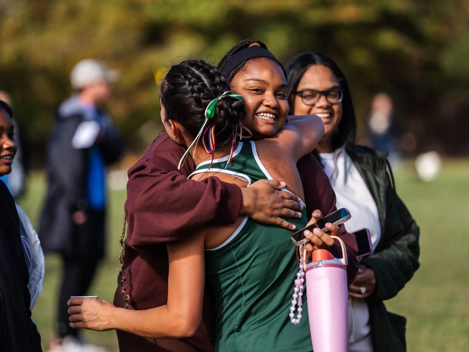 Yun giving her basketball teammate Kaila Dorch ‘26 a hug after the Skyline win. Photo by Luca Mesiti ‘27.