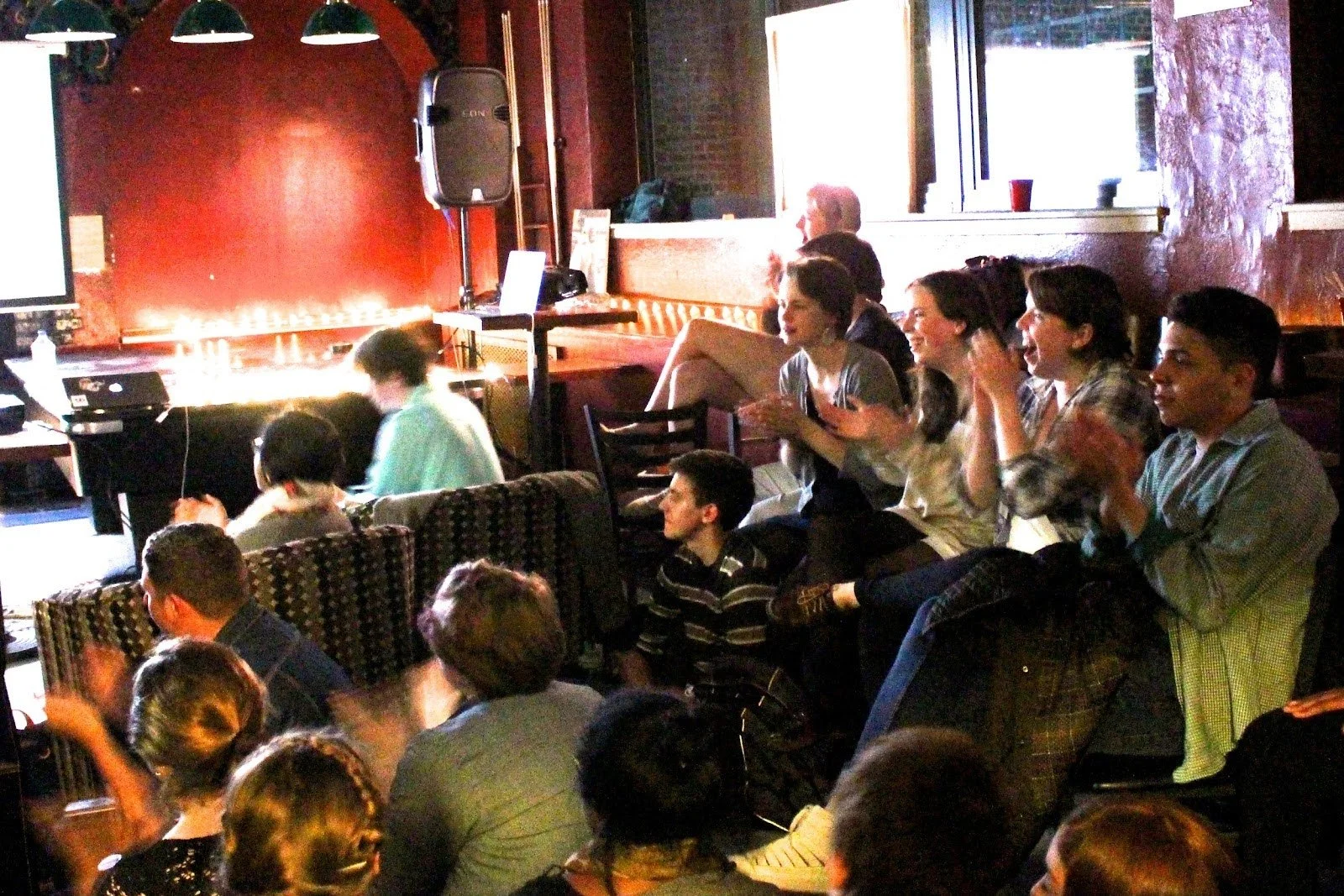 Students applaud the performers at an Open Mic in the Black Squirrel,